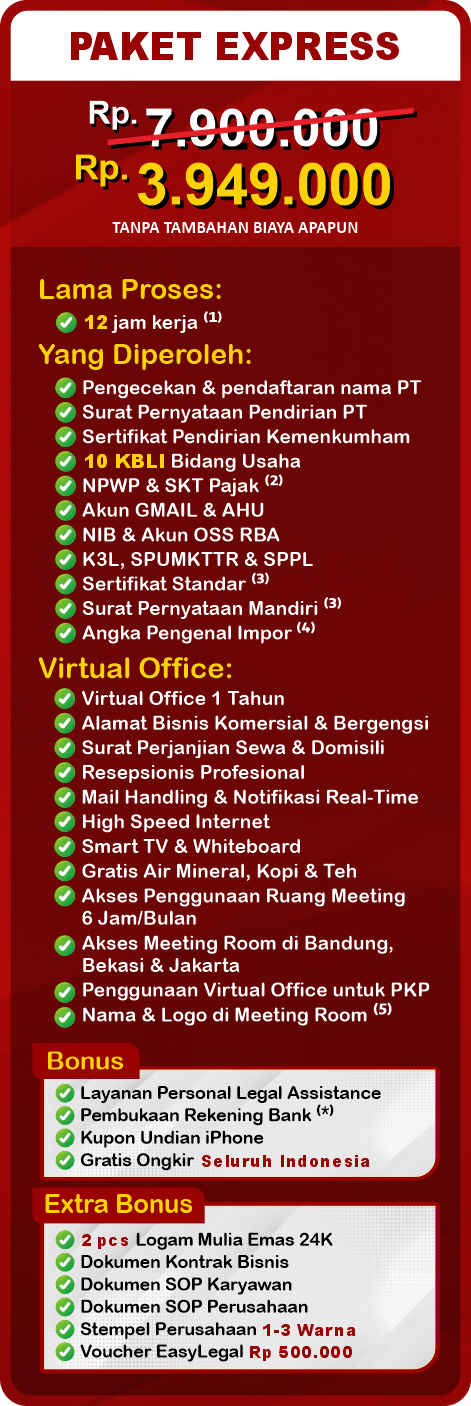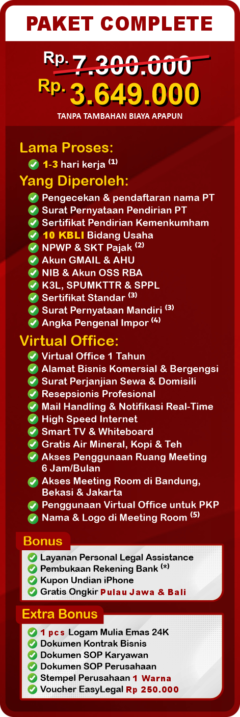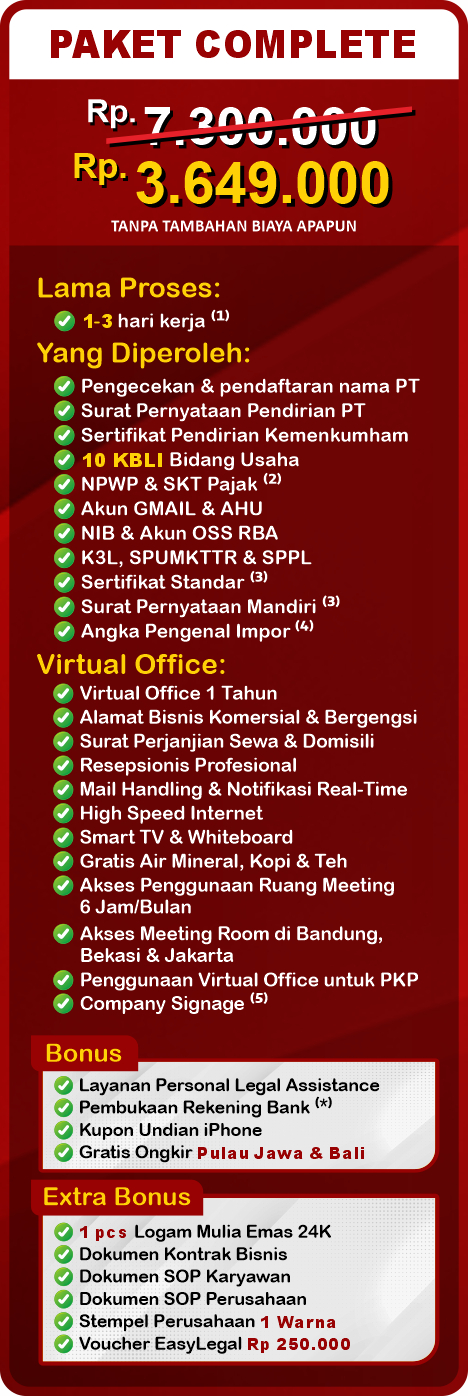 Dapatkan Diskon 50% untuk pendirian PT PMA. Ambil segera kesempatan ini, kuota terbatas!